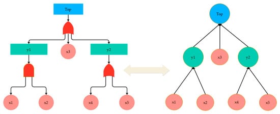 In order to describe the correspondence between FFTA and Bayesian networks, an example is listed in Figure 4 for reference.