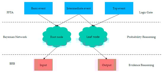 This is a nonlinear mapping. It is not executed in a specific software language. With , logic gates in the FFTA were converted into belief rules in the BRB, and events in the FFTA were converted into inputs and outputs in the BRB. The inputs of the function were logic gates, events, and parameter sets in the FFTA, and the outputs were belief rules and their inputs and outputs in the BRB.