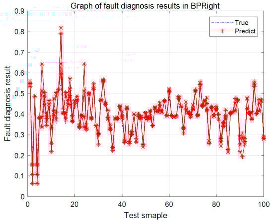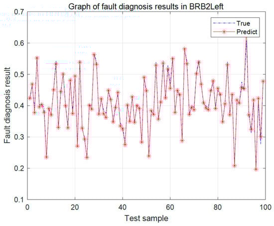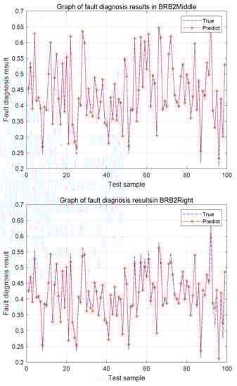 It can be seen that the results of the three groups of experiments fit well with real data. It could obtain the accuracy of each group through experiments, and then obtain the fluctuation range of experimental accuracy of the case. Then, this paper performed 10 experiments to find out the accuracy and, in this experiment, the accuracy of the three groups was 97.98%, 98.99% and 100.00%, the average accuracy of this experiment is 98.99%. It can be concluded that the accuracy of this experiment fluctuates in the range of 97.98% to 100%. In general, the FFBRB model established in this paper has a good processing effect. The experimental diagnosis results are shown in Figure 11.