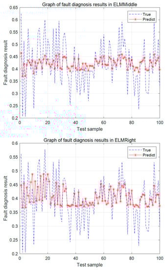 In the three groups of the BP method, the average accuracy of the experimental fault diagnosis value compared with the real value is 85.90%, 91.30% and 85.50%, respectively. In the three groups of the ELM method, the average accuracy of the experimental fault diagnosis value obtained by us compared with the real value is 54.40%, 63.20% and 65.50%, respectively.