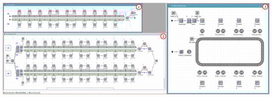 - Lee, S.; Park, S.; Yang, J.; Son, Y.H.; Ko, M.J.; Lim, J.W.; Kong, H.; Jung, Y.; Kim, S.; Noh, S.D.; et al. Modeling & Simulation-Based Assessments of Reconfigurability and Productivity for Automotive Module Assembly Lines. J. Comput. Des. Eng. 2019, 24, 233–247. [Google Scholar] [CrossRef]