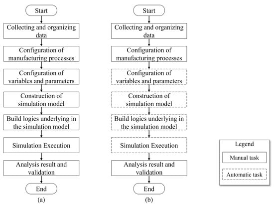 The second advantage of the application is that the time needed in manual engineering tasks for the simulation analysis are shortened. Figure 11 shows a flowchart showing the procedure of traditional simulation model building and that of DT simulation.