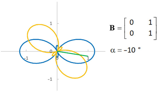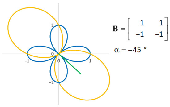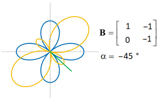 One root of the quadratic equation corresponds to the initial state and the other to the state rotated by angle . In terms of solving the task, only the rotated state is of interest. Subsequently, the remaining components of the symmetric tensor are expressed as follows: