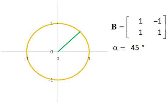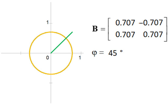 Despite varying angle , a rotational matrix always preserves the determinant (6). In this case, the matrix eigenvalues equal one, so the initial angle must equal 45°. However, as demonstrated below, a rotational matrix cannot be a tensor: