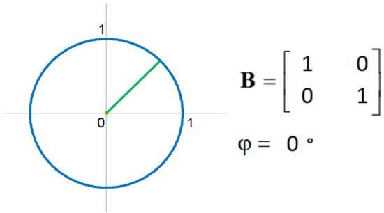 Rotating the coordinate system with respect to the initial state yields a square matrix, but the information about the initial state prior to rotation is lost. In the initial state, the initial vector is defined by angle . If the rotation angle is zero, then the components of the initial vector lie along the main coordinate axis. Unknown components of the initial vector, , are the eigenvalues of the transformation matrix that emerges from rotating the coordinate system, and this matrix is diagonal.
