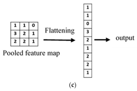 CNN structure (a) Convolutional layer; (b) Pooling layer; (c) Fully connected layer.