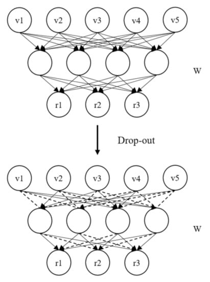 Figure 9. The drop out principle is that the connected neurons are randomly selected and disconnected, eliminating adaptability between neurons during training.