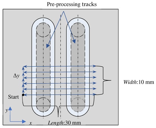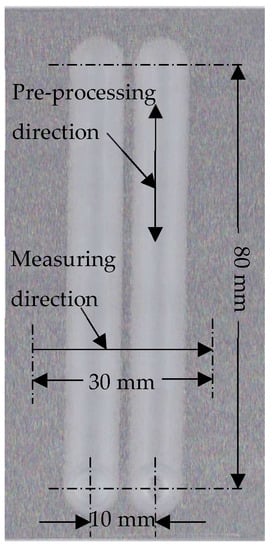 - For Pre-processing, two tracks are processed with a magnetic pole with an end diameter of 3 mm to produce a surface with fluctuation in the x-direction, as shown in Figure 10;