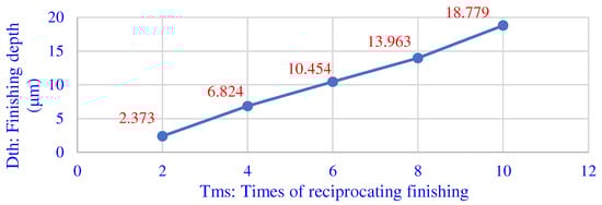 Figure 12 is the average value of the finishing depth of each group according to the finishing method described above. As the times of reciprocating finishing increase, the finishing depth becomes deeper. Moreover, the finishing depth has a linear relationship with the number of reciprocations. After calculation, the average height reduction of the one loop process is about 1.88 μm.