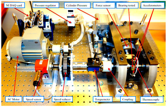 The FEMTO bearing dataset of prognostic and health management (PHM)’s IEEE challenge 2012, provided by the National Aeronautics and Space Administration (NASA) [27], is used. Figure 2 is an experimental setup of PRONOSTIA, used to test and validate the bearing’s fault detection and prognostics.