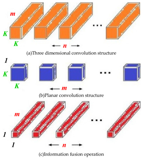 Designing the new convolution structure to realize the optimal trade-off between accuracy and efficiency is an important research direction in recent years. In SqueezeNet [21], 1 × 1 convolution is widely used to reduce the number of model parameters. In recent years, the neural network lightweight research focus has transformed from reducing the number of model parameters to reducing the actual amount of calculation and hardware delay. For example, the deep separable convolution structure [22] has attracted more and more attention, as shown in Figure 2. The convolution structure decomposes the traditional three-dimensional convolution into a combination of two-dimensional surface convolution and 1 × 1 convolution, which can reduce the amount of calculation by more than eight times. Deep separable convolution is widely used in MobileNet series networks [23,24] to construct an efficient convolution calculation module with linear bottleneck structure, and then build a high-efficiency and low-power deep convolutional network, which is suitable for operation on airborne hardware devices equipped with tensor processors. ShuffleNet series networks [25,26] further reduce the floating-point computation by using grouped convolution structure and channeling random crisscrossing operation. CondenseNet [27] proposes a fusion convolution structure to maintain the dense connection between layers useful for prominent features, which can facilitate feature reuse and greatly improve computational efficiency.