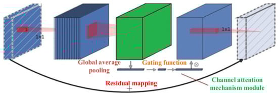 Differently from the traditional visual saliency mechanism, the channel attention mechanism can be considered as a general network optimization method, which can directs the limited system computing resources to deal with the most sensitive part of the input signal [34]. From the recognizing and understanding of specific targets to the construction of sequence-based deep models, the advantages of the channel attention mechanism have been reflected in a series of pattern recognition tasks. The channel attention mechanism module in a deep neural network is usually realized by gating functions (such as swish or sigmoid) and information-sorting technology.