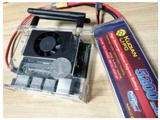 To verify the practical application performance and low power consumption characteristics, desktop computer-based X86 architecture should not be used. We selected the Xavier Jetson NX-embedded development board with only 15W power consumption as a test platform for aerial robot object detection, as shown in Figure 7. As no test images have been used in the process of model training, the test results can reflect the generalization ability of YZNet to a certain extent. In order to more clearly demonstrate the comprehensive performance advantages of YZNet, we carried out comparative experiments with the original YOLOV5. The training set and test set are exactly the same from the VOC2007 dataset. Each convolutional neural network is optimized by the same training method. The experimental results are shown in Table 3. The acronym “mAP” means mean average precision, and the acronym ”IoU” means intersection over union, where the numerator is the bounding boxes predicted by the detector, and the denominator is the real bounding boxes. Specifically we use 10 IoU thresholds of IoU = 05:0.95, which can average over IoU rewards detectors with better localization. The acronym “FPS” means frames per second. The real-time performance test for YZNet-YOLOV5-tiny detector is shown in Figure 10.
