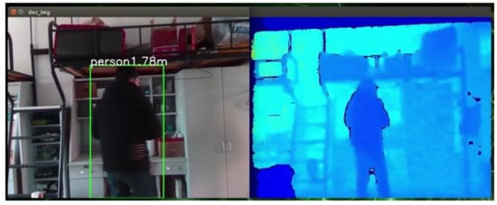 The real-time performance test for object detection on the NVIDIA Jetson NX embedded platform. The YZNet-YOLOV5-tiny system can simultaneously capture the target category with the distance provided by the depth image from the D435i camera. The complete video is available at: https://www.bilibili.com/video/BV1G44y1J76B?share_source=copy_web (19 December 2021).