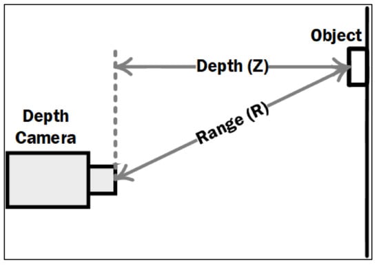 As seen in Figure 2, the value of the depth pixel representing the depth (Z) of an obstacle/object is determined in relation to a parallel plane of the depth sensor doing the capturing and not in relation to the actual range (R) of the obstacle/object from the depth sensor.
