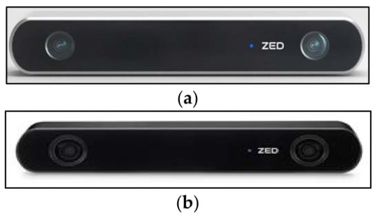 The ZED sensor uses wide-angle optical lenses with a FOV of 110°, and it can stream an uncompressed video signal at a rate up to 100 fps in Wide Video Graphics Array (WVGA) format. The depth image is provided with a 32-bit resolution. Hence, the camera gives a very accurate and precise depth image that describes the depth differences, i.e., the different distances from the plane of the camera. Right and left video frames are synchronized and streamed as a single uncompressed video frame in the side-by-side format. Various configurations and capturing parameters of the on-board image signal processor, such as brightness, saturation, resolution, and contrast, can be adjusted through the SDK provided by Stereolabs [16]. Furthermore, ZED devices support several software packages, called “wrappers,” such as ROS, MATLAB, Python, etc. All these software packages allow the modification of different parameters depending on the user requirements, such as the image quality, depth quality, sensing mode, name of topics, quantity of frames per second, etc. [16,17,18,19,20]. Figure 3 shows the ZED depth sensors [16].