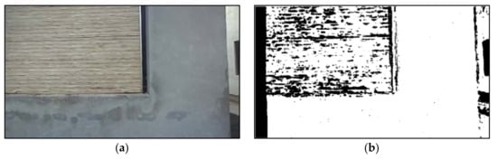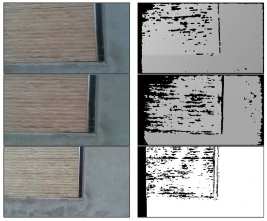In first two examples in Figure 12b, the wall area is at the same distance from the depth camera plain, however the first two depth maps show different gray levels inside the wall area. The reason for this phenomenon lies in the next explanation [7,16]. The gray levels depend on the range of the scale used to render the depth map. If the range is short, the “minimum” depth difference can be visible in object at similar distances. On other hand, if the range of the scale is too large, some objects may not be visible in the image. Additionally, the capturing conditions (illumination, shadows, darkness, etc.) can affect to the visualization of depth maps too. Furthermore, when measuring large areas, such as walls whose planes are at a certain distance from the plane of the depth camera, the results may be scattered, dispersed and different gray levels can occur since, in real-life scenarios, the distances between the wall and depth camera are different in relation to the direct distance of the depth camera from the wall surface itself. Such phenomena are possible due to the imperfections of the depth sensors themselves, and due to the illumination and shadows, and can affect the depth calculation results of the stereo algorithm [16]. Hence, only through experiments the best possible depth map can be achieved [7,16]. There are no universal solutions, and the appropriate measuring conditions must be determined for each application and scene separately [7,16].