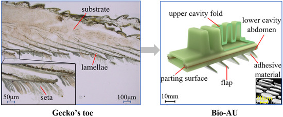 Design inspiration and structure of bio-inspired adhesive unit (Bio-AU).