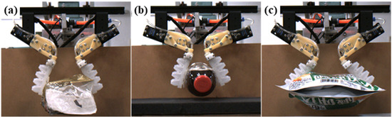 - Wang, Z.; Or, K.; Hirai, S. A Dual-Mode Soft Gripper for Food Packaging. Robot. Auton. Syst. 2020, 125, 103427. [Google Scholar] [CrossRef]