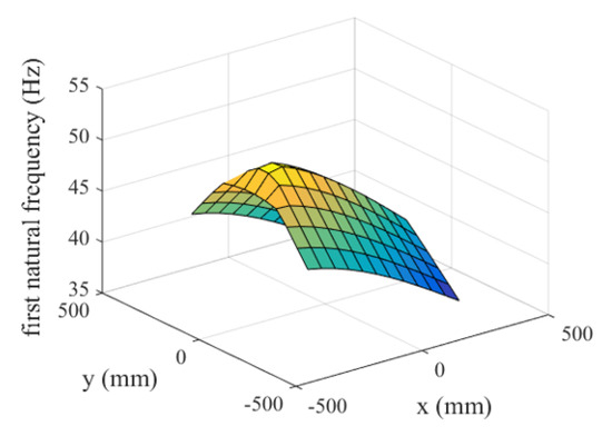 Variation of the first natural frequency.