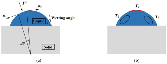 As shown in Figure 5a, the surface tension on the free surface is simplified to an equivalent pressure, and the corresponding expression is shown in Equation (26):