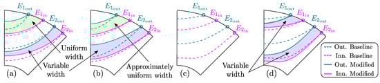In some cases, the complete freedom in varying the eccentricity causes the inner and outer barrier collision (Figure 3a), which inevitably leads to infeasible designs.
