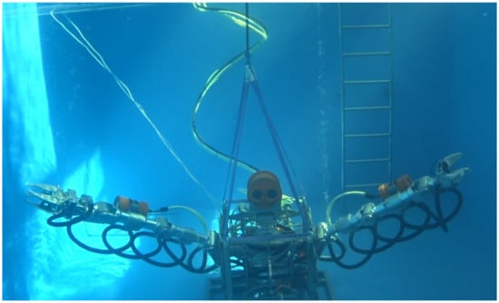 - Kramar, V.; Kabanov, A.; Kramar, O.; Putin, A. Modeling and testing of control system for an underwater dual-arm robot. IOP Conf. Ser. Mater. Sci. Eng. 2020, 971, 042076. [Google Scholar] [CrossRef]