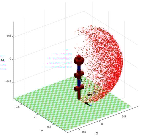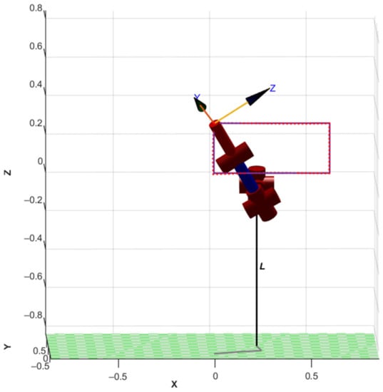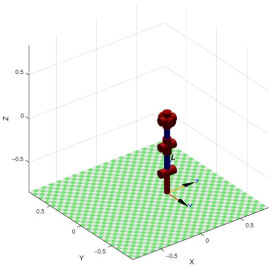 To build a computer model of the manipulator kinematics, we will use the RoboticsToolbox of MATLAB [17]. The values of parameters , , and are selected from Table 1. The parameter describes the initial position of the manipulator.