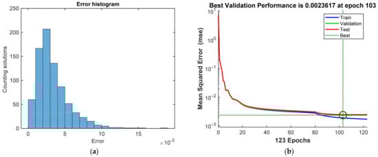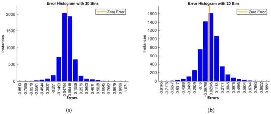 Figure 9 shows error histograms as the difference between target and predicted values when training a MATRIX NN with 40,000 values of training datasets using the indicated algorithms.