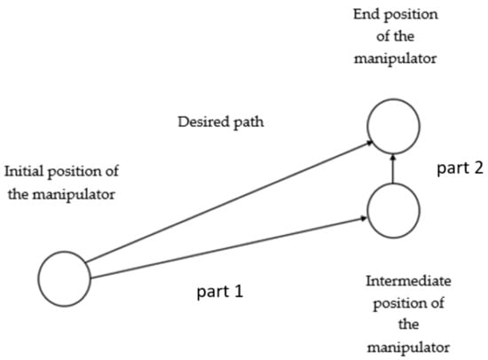 In most applications, the manipulator always starts motion from some arbitrary position and moves along a trajectory from successive points. Including the current manipulator configuration in the input data has a positive effect on estimating the joint angles for the next desired position. We will artificially divide the trajectory of the manipulator to a given point into two parts. The first part is the arrival of the manipulator in the area as close as possible to the desired point and the second part is the adjustment of the manipulator to the desired point (Figure 10).