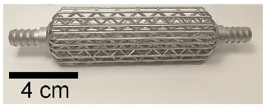 - Takezawa, A.; Zhang, X.; Kitamura, M. Optimization of an Additively Manufactured Functionally Graded Lattice Structure with Liquid Cooling Considering Structural Performances. Int. J. Heat Mass Transf. 2019, 143, 118564. [Google Scholar] [CrossRef]