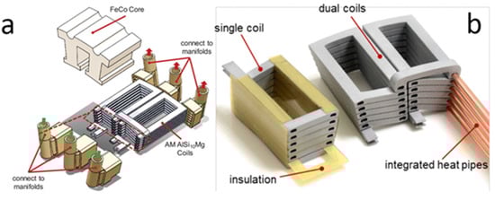 AM (a) hollow windings [4] and (b) with integrated copper heat pipes reprinted with permission from Ref. [97]. Copyright 2021 Elsevier.