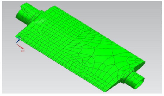 Since the power station lacks the design drawings of the guide vane, this paper uses reverse engineering [21,22,23] means to scan the guide vane of the power station on site using a handheld 3D scanner, as shown in Figure 1. Solid restoration is performed according to Geomagic Studio software, which is based on the principle of using many tiny spatial triangular slices to approximate the restored solid model. In modeling, the NURBS surface model is created directly by fitting NURBS surface slices. The surface process is divided into a point phase, a polygon phase, and a surface phase, and these three phases are closely linked together. The point phase to polygon phase realizes combining point clouds and smoothing data; the polygon phase to surface phase realizes smoothing and editing polygon models; and the surface phase to analysis phase realizes regularization and shape adjustment. The cavities are filled based on curvature, tangent and plane methods. For general holes, the curvature holes are repaired directly based on the surrounding point cloud data; for undesirable holes, the point cloud data around the holes are firstly removed, then repaired, and finally the guide vane is modeled, and the solid model of the guide vane is obtained as shown in Figure 2. Finally, the movable guide leaf was modeled using the commercial software UG.