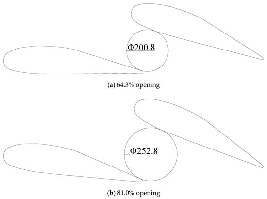 (a,b) Sketch of guide vane opening of 64.3%, 81% sketch.