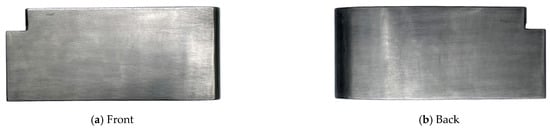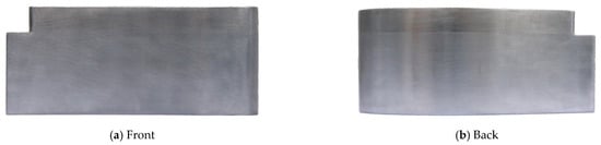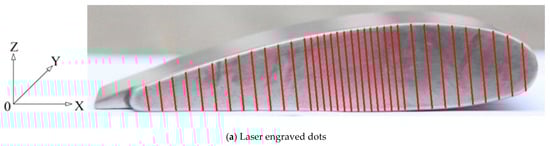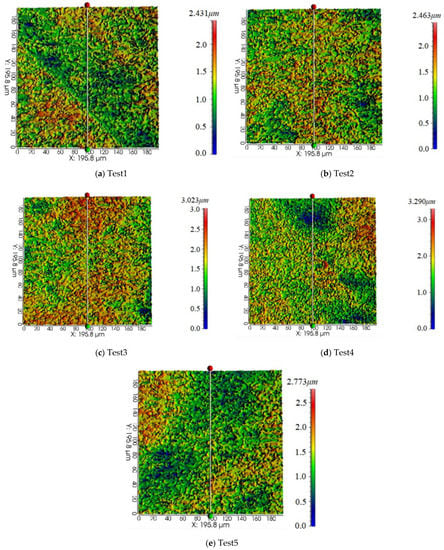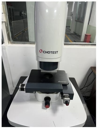 In this paper, the material of the guide vane test piece is ZG06Cr13Ni4Mo, because we want to compare the effect of roughness on the wear of the guide vane, so the surface of the guide vane is polished and ground to increase its smoothness. Many methods have been proposed by domestic and foreign scholars about the measurement of surface roughness of the specimen [24,25,26]. By measuring the roughness of the guide vane specimen at five different positions after polishing and taking the average value as the specific discrimination of roughness, the results are shown in Figure 7 and Table 2. Under the same working condition, the guide vane before and after grinding was tested for mud and sand wear respectively, and the diagram of the guide vane before and after grinding is shown in Figure 8 and Figure 9. In addition, considering the reduction of wear, a tungsten carbide coating with a thickness of 0.3 mm was sprayed on the surface of the guide vane. In order to facilitate the measurement of the test piece after the test, laser inscriptions were made along the z-direction on the slot surface of the guide vane, and each inscription was numbered as shown in Figure 10. The depth before and after the surface wear at the back and front test positions of the guide vane is read using a white light interference profiler, and the data before and after the test are calibrated by selecting the same position within the reference plane and extracting the calibrated position in the same plane, then the difference between the two contour lines is the wear depth of the corresponding position. The white light interference profiler is shown in Figure 11.