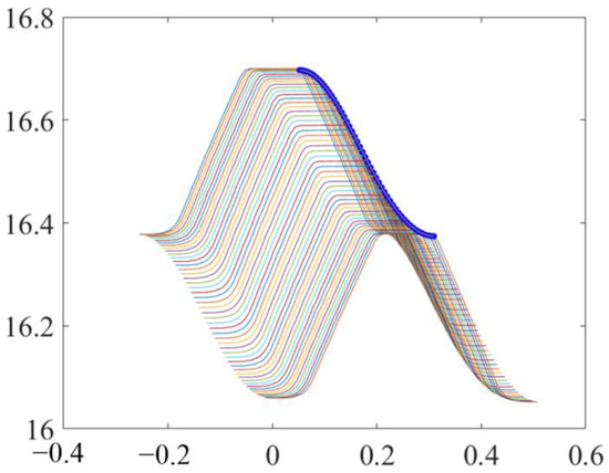 The rigid tooth profile obtained by the envelope method is shown in Figure 7. The thin curve family in this figure is the motion trajectory of the flexible tooth. And the solid blue line is the tooth profile of the rigid wheel after enveloping.
