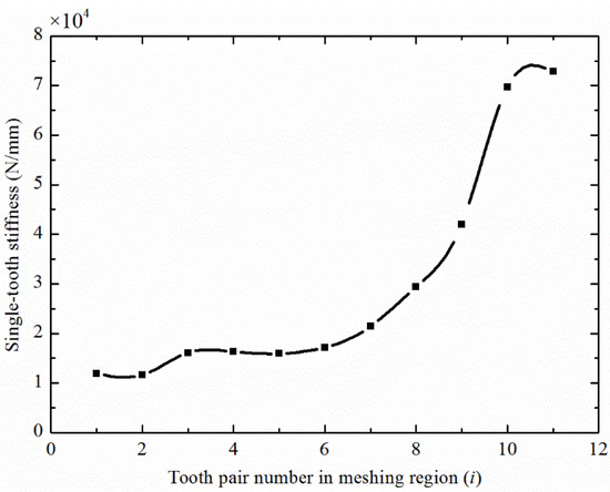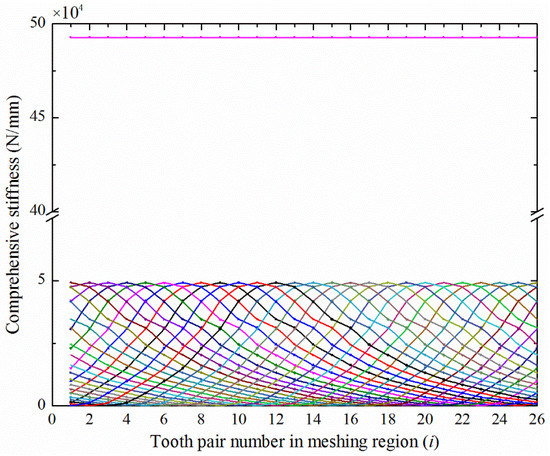 The above-mentioned procedure can be repeated when multiple pairs of teeth are in contact. The comprehensive stiffness can be expressed as: