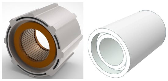 The stator assembly consists of three parts: the shell, stator core, and armature winding, which is embedded in the teeth of the stator core. Therefore, the stator teeth, where the windings are installed, the stator yoke and the shell are the equivalent of three rigidly connected cylinders, as shown in Figure 1.
