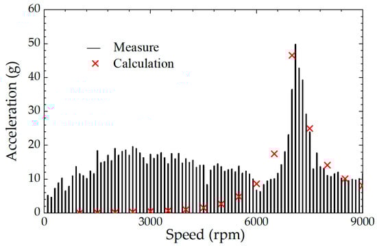 Comparison of measured and analytical accelerations of the motor at different speeds.