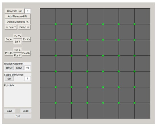 To verify the proposed method, an application was created in the Matlab environment (Figure 6), which calculates the correction mesh based on the entered deviations at selected points. Output of the application is a calculated correction mesh and summary information about the achieved accuracy, i.e., the difference between the requested and the calculated corrections.