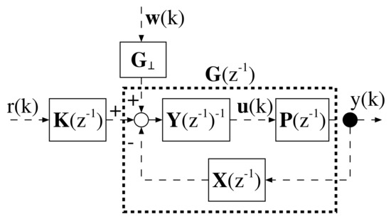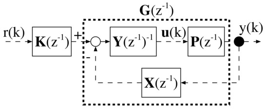 where is the reference input for the plant output and is set to a step function. and are polynomial vectors and is a non-singular polynomial matrix.