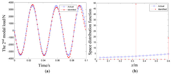 Via Equation (19), the is selected as the equivalent, . Correspondingly, the spatial distribution function turns out to be: . By denoting the weight coefficient that is formed by and as , , the reconstructed modal load can be recast as: