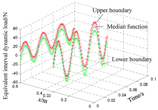 where and denote two different time points, and they have . As shown in Figure 1, by using the interval process, the random load time history can be approximately described by the upper and lower boundaries, the median function, and the radius function.