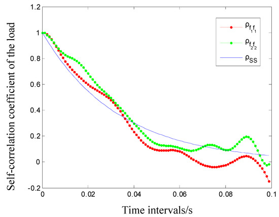 By adopting the interval process model, the random characteristics of the distributed random dynamic load can be approximately characterized by its radius function and its correlation coefficient function. The radius function reflects the fluctuation range of the load, and the correlation coefficients reveal the correlation of the load values at different time points. As the covariance matrix of the load contains the information of both (see Equation (5)), the identification of the random characteristics of the excitation load is thus converted into the identification of its covariance matrix, and then to acquire its radius function and the correlation coefficient function.