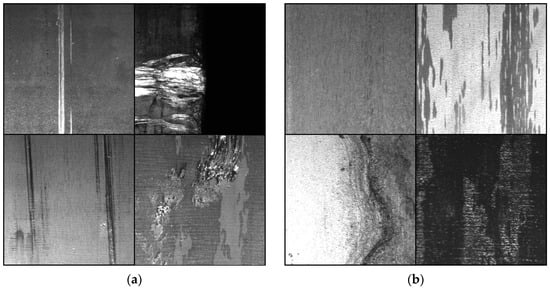 Defects were investigated using images obtained in industrial conditions during the manufacture of rolled steel sheets. The training sample was based on images provided by Severstal, the Russian steel and mining company, as part of a competition in analytics and modeling organized on the Kaggle platform in 2019 [37]. Images that correspond to the studied subclasses were selected from the array of images. The initial Severstal database contains grayscale images of 1600 × 256 pixels.