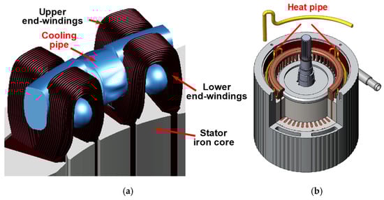 - Fang, G.; Yuan, W.; Yan, Z.; Sun, Y.; Tang, Y. Thermal management integrated with three-dimensional heat pipes for air-cooled permanent magnet synchronous motor. Appl. Therm. Eng. 2019, 152, 594–604. [Google Scholar] [CrossRef]