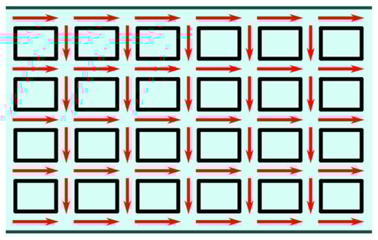 One so-called hairpin winding can be constructed from rectangular conductors, which are curved into a U-shape (as can be seen in Figure 2a) and inserted into the iron core slots. The ends of the windings are joined together (usually welded) on the other side of the iron core. For very high current windings, multiple insulated copper conductors can be printed in parallel upon the so-called Roebel transposition (see Figure 2b), thus improving the efficiency and other performances of high-power EMs [,].