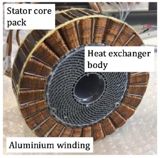 - Sixel, W.; Liu, M.; Nellis, G.; Sarlioglu, B. Cooling of windings in electric machines via 3-D printed heat exchanger. IEEE Trans. Ind. Appl. 2020, 56, 4718–4726. [Google Scholar] [CrossRef]