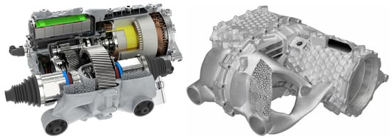 - Porsche Electric Traction Drive System Housing. Available online: https://www.tuningblog.eu/en/wp-content/uploads/2020/12/E-Antrieb-Gehaeuse-3D-Drucker-Porsche-2.jpg; https://www.tuningblog.eu/en/wp-content/uploads/2020/12/E-Antrieb-Gehaeuse-3D-Drucker-Porsche-4.jpg (accessed on 30 September 2021).