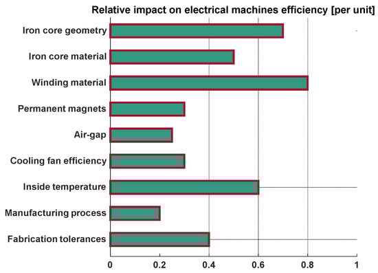 Nowadays, almost all the EMs have windings made of copper, except the squirrel cages of low power/voltage IMs, which are manufactured from aluminum []. Both materials have very good electrical and heat conductivity. The first property is crucial in the case of EMs since it enables low resistance to the windings resulting in low winding losses.